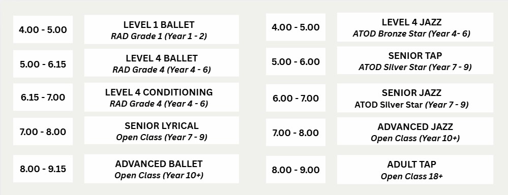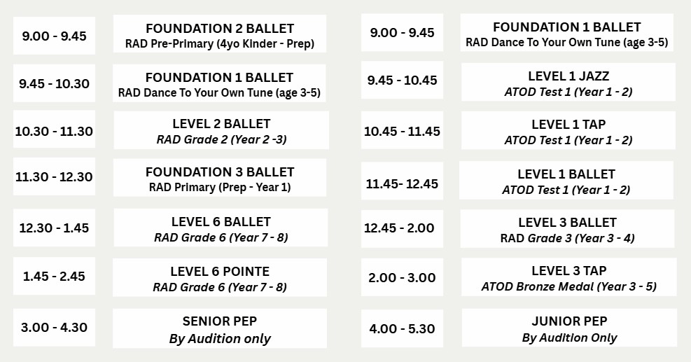We are happy for you to watch your child’s trial class so that you can see our approach to teaching dance. Once trial classes are complete parents do not watch classes unless it is an open week. These usually occur once a term during the last week of term. Many younger students find having parents in the room a distraction and are not as engaged in the learning process.