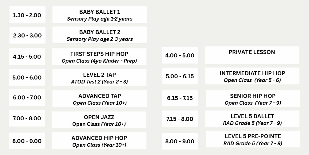 We have a variety of styles to suit every child. For pre-school age students we have Foundation ballet classes which provide movement and variety to teach pre-schoolers to follow directions and move in unison while having fun. Primary school age children can try Tap, Jazz and Hip Hop styles as well as ballet, while our older students can also try all of these plus Lyrical. Hip Hop is a great style for kids who prefer to move with a bit more freedom. Feel free to send us a message and we will be happy to help you decide!
