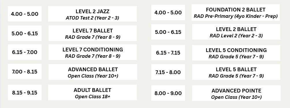 Fees are paid per term regardless of the number of weeks in the term. Pro-rata fees will only be applied if the enrolment commences after week 4 of term at a cost of $25 per class.. Discounts are applied on 2nd class – 5% , 3rd & 4th class – 20%, 5th class and more – 40%.