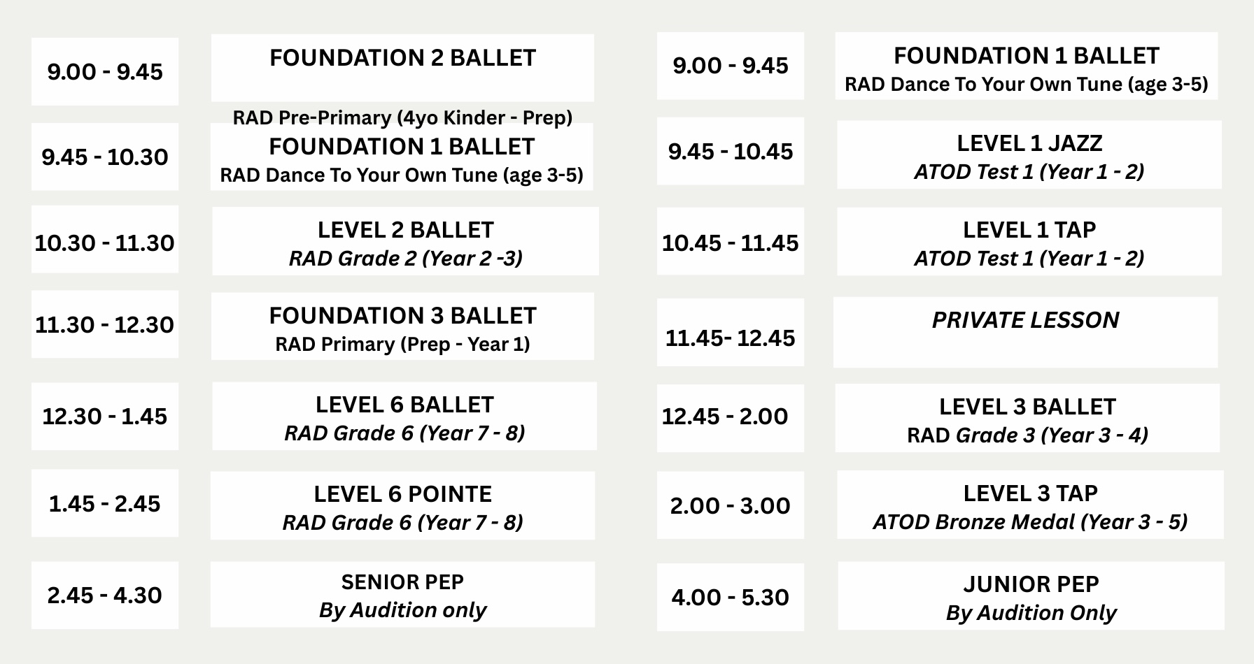 2026 Class Timetable & Term Dates