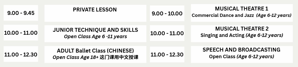 Prices vary per duration of the class and GST inclusive, 45 minutes $215 (pre-school classes), 60 minutes $225, 75 minutes $235, 90 minutes $250