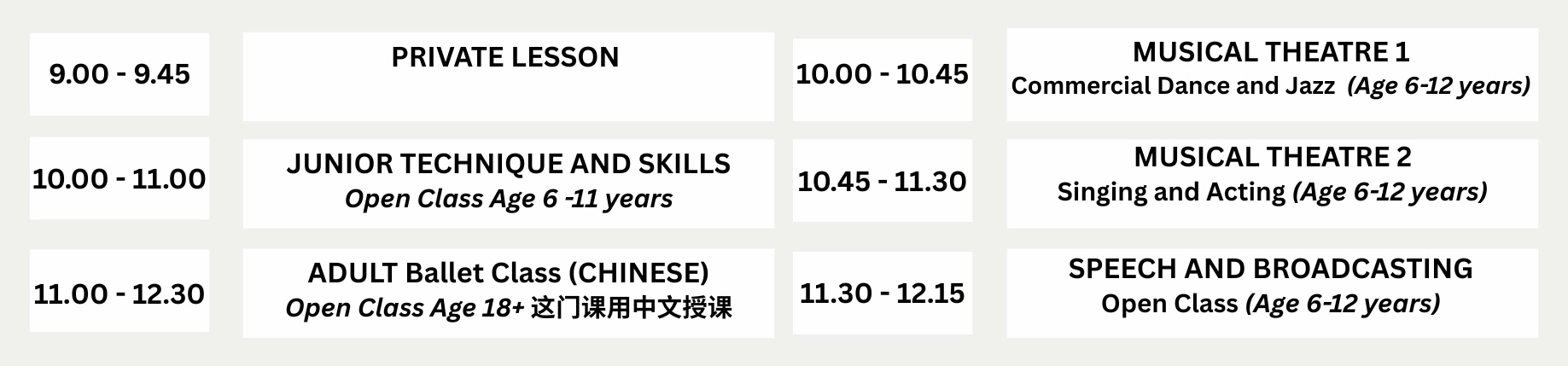 NOTE: Classes do not run on public holidays. If you miss a class, no make up classes and no refunds are provided.